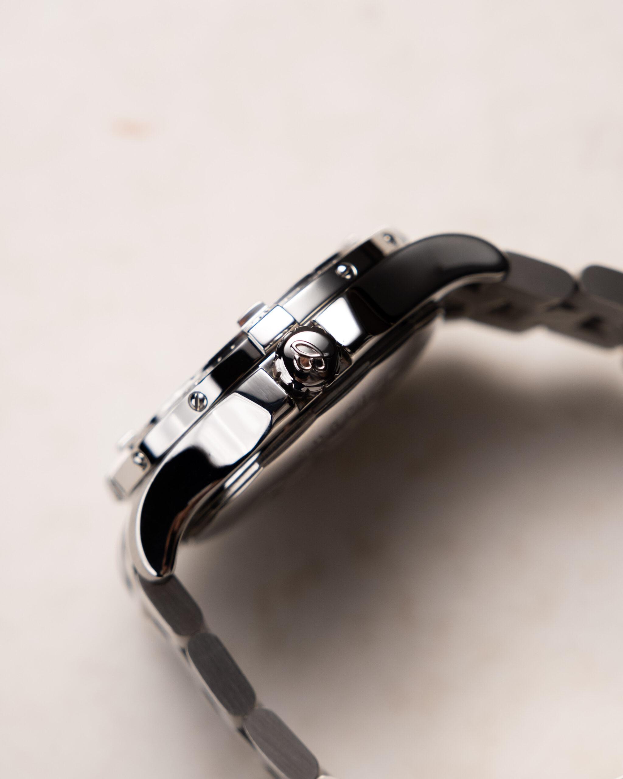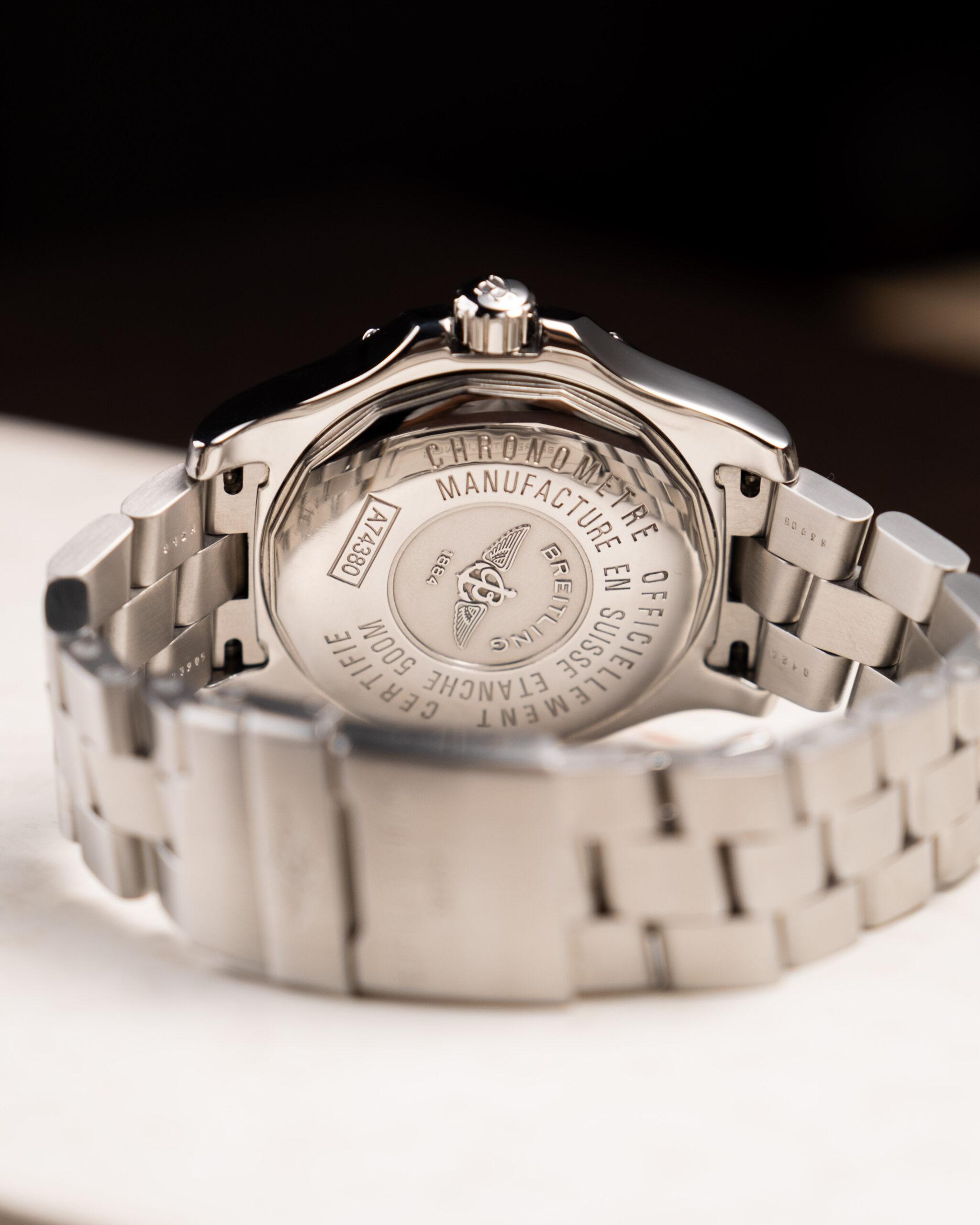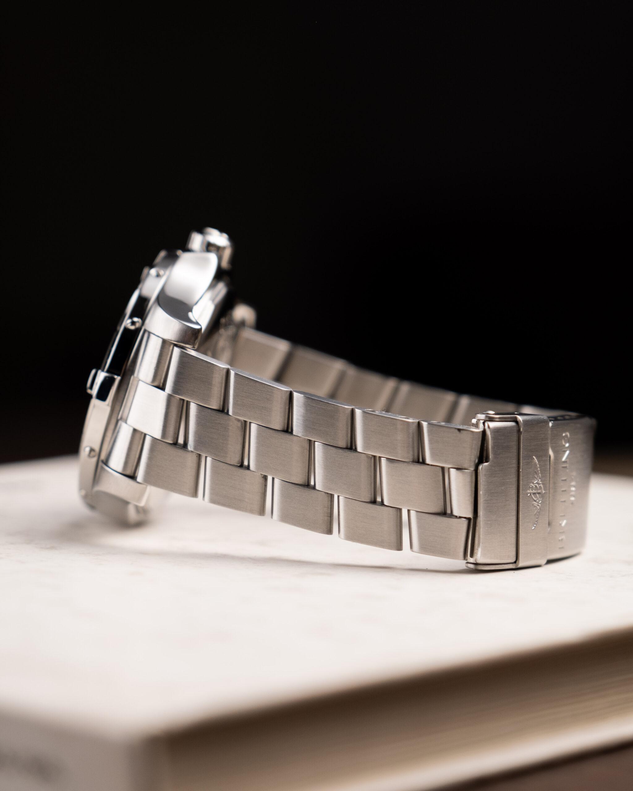 Za Breitling precej konzervativnih 41mm premera, na tej uri izpade res super. Všeč mi je tudi detajl 13-24 številk na številčnici pa seveda rdeča konica sekundnika. Res zanimiv diver po odlični ceni, pride v full setu in še z originalnim računom iz leta 2008! Super alternativa za vse, ki vam je všeč Rolex Explorer II Polar 😉