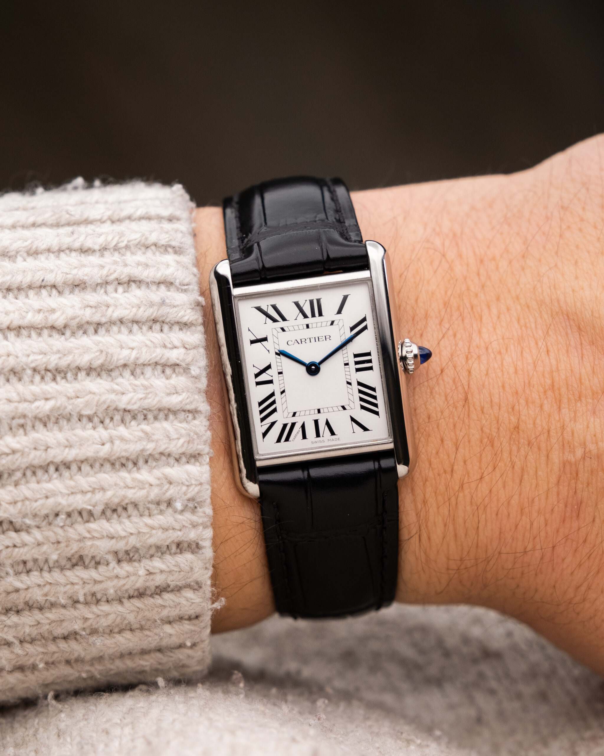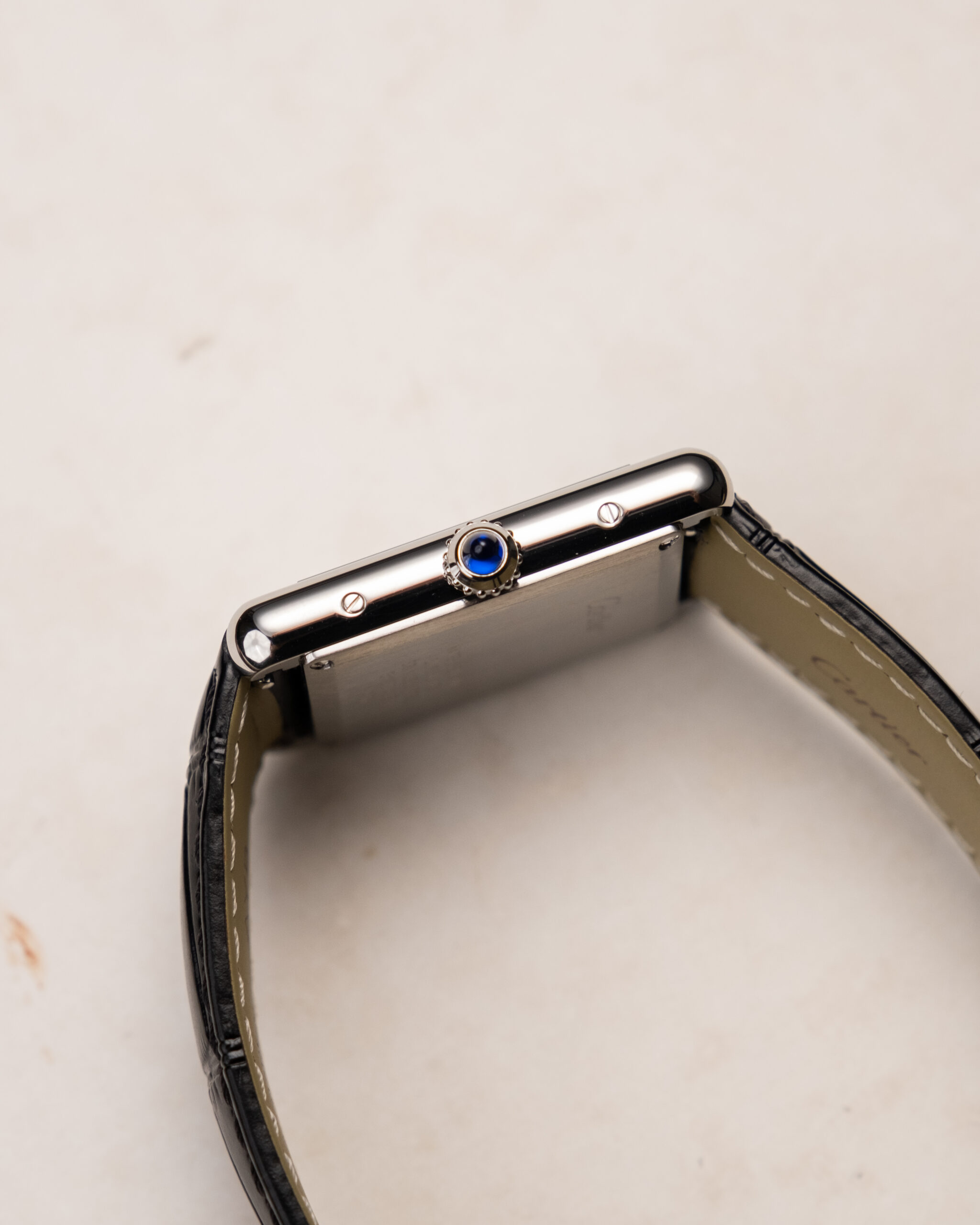 Cartier Tank je neizpodbitna ikona v svetu dizajna in ur. Tale WSTA0059 je na ven še ena klasična verzija v jeklu, z belo številčnico in rimskimi številkami, ki pa skrivajo en pomemben detajl. Če uro pogledamo zelo podrobno, vidimo, da so te rimske številke malenkost globje od same številčnice. Služijo namreč kot sončne celice, ki zbirajo sončno energijo za baterijski mehanizem, ki naj bi posledično z eno baterijo deloval kar 16 let.