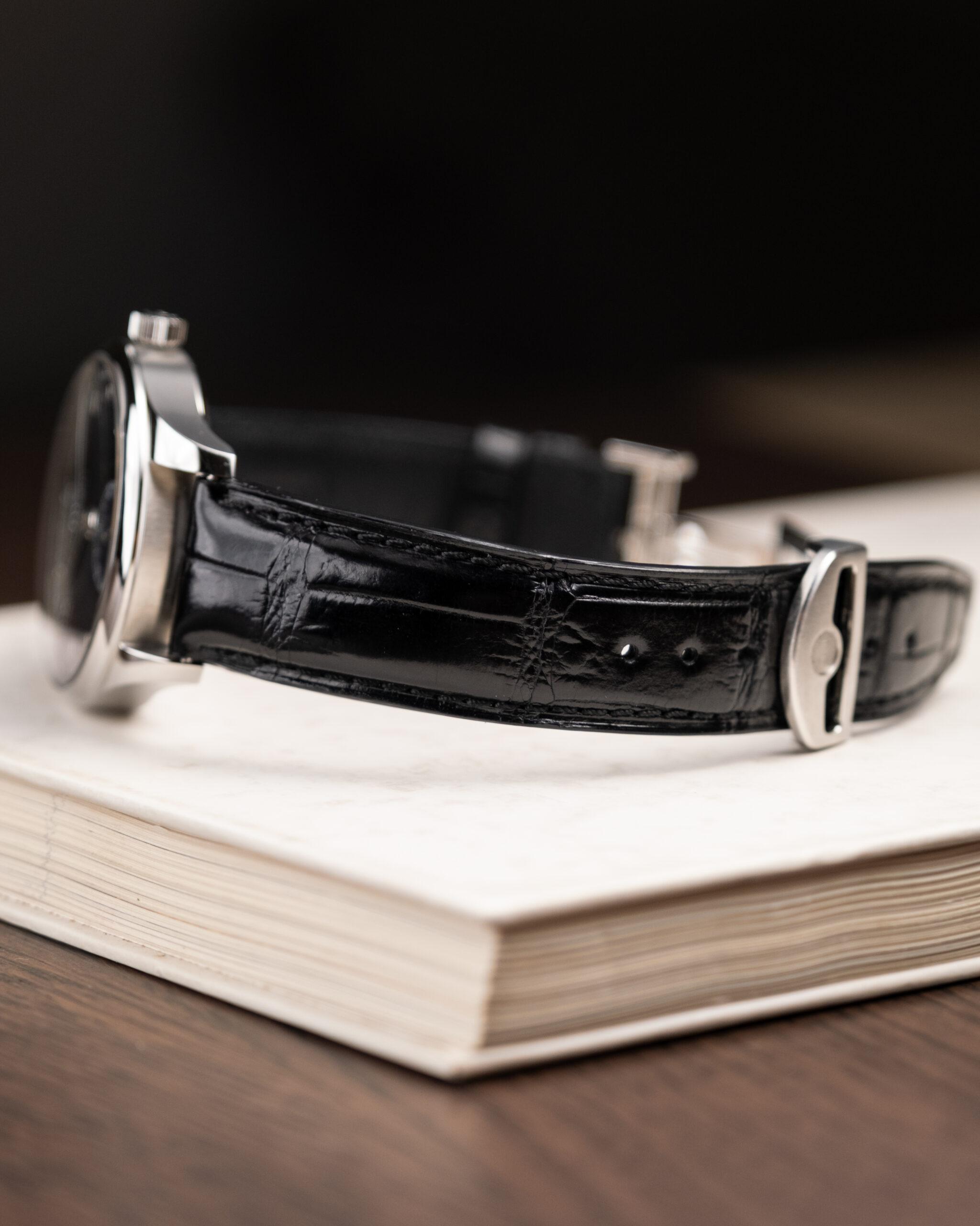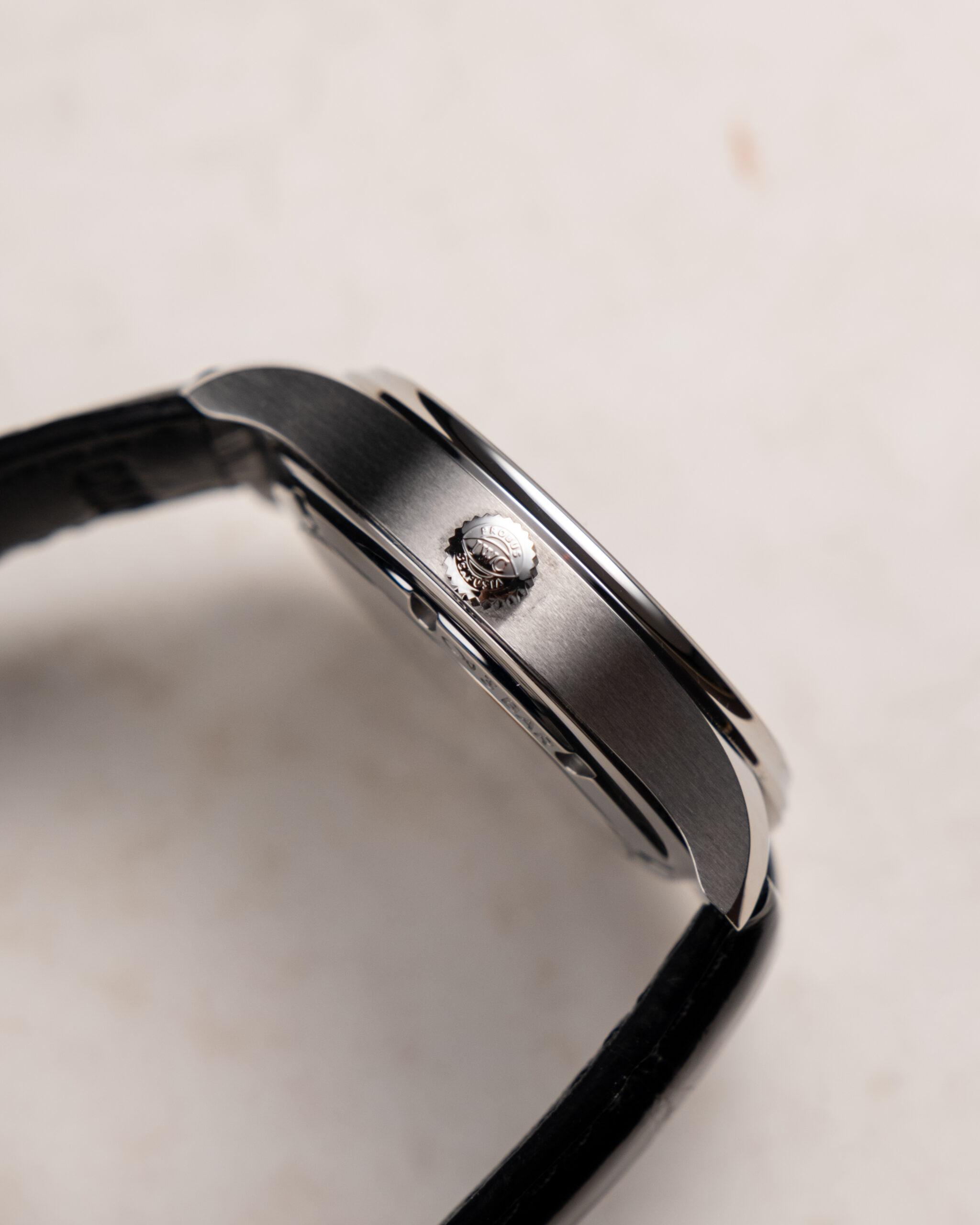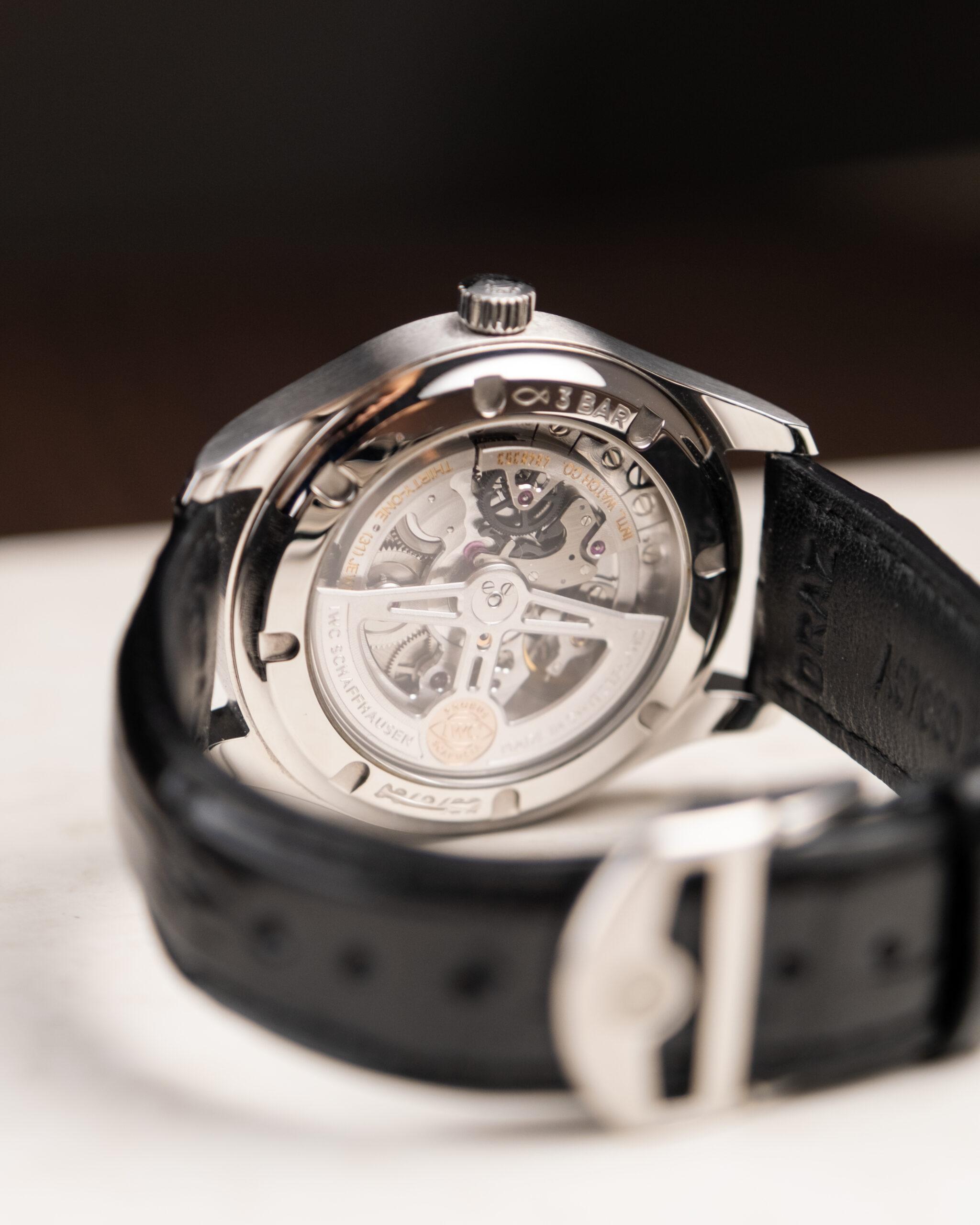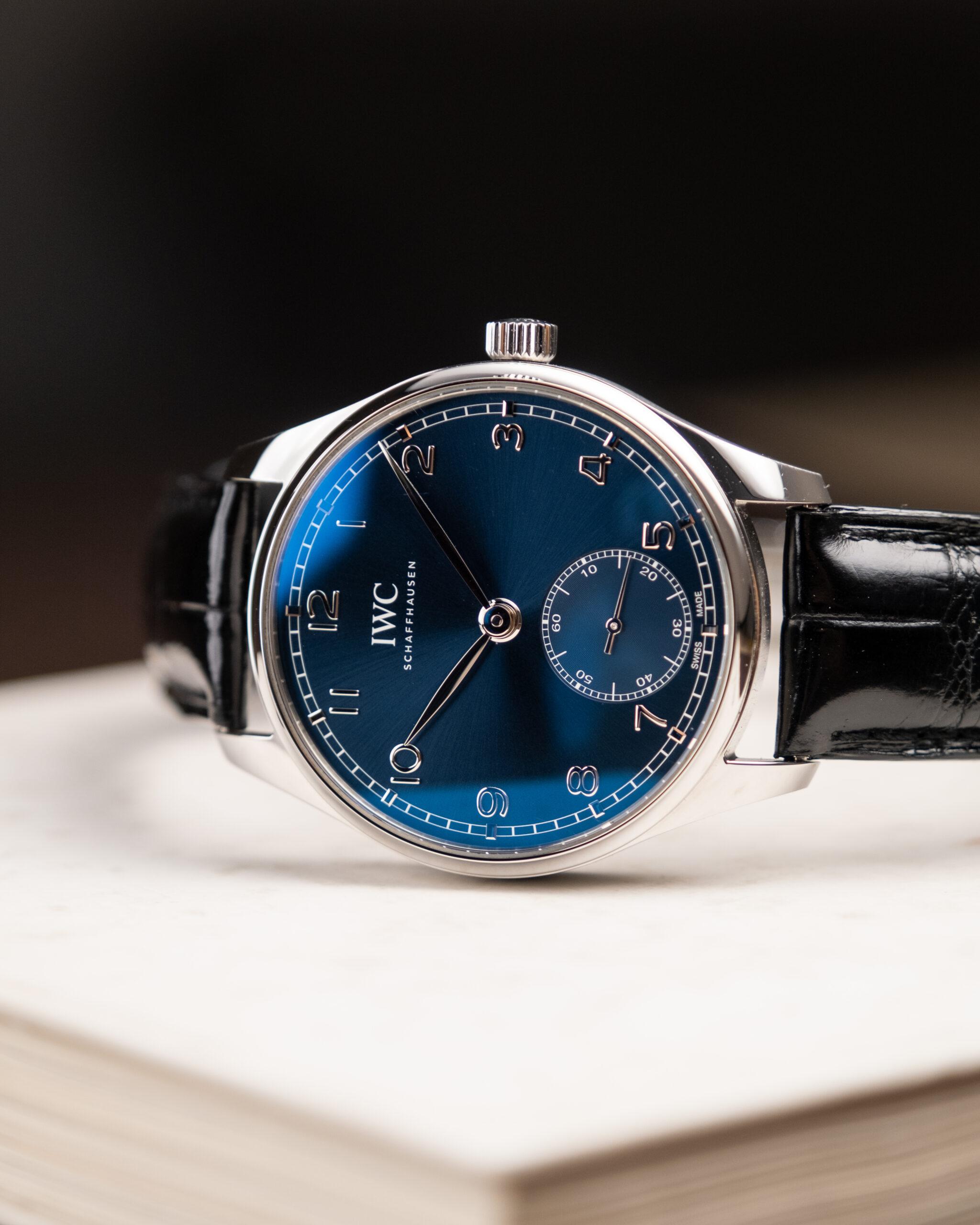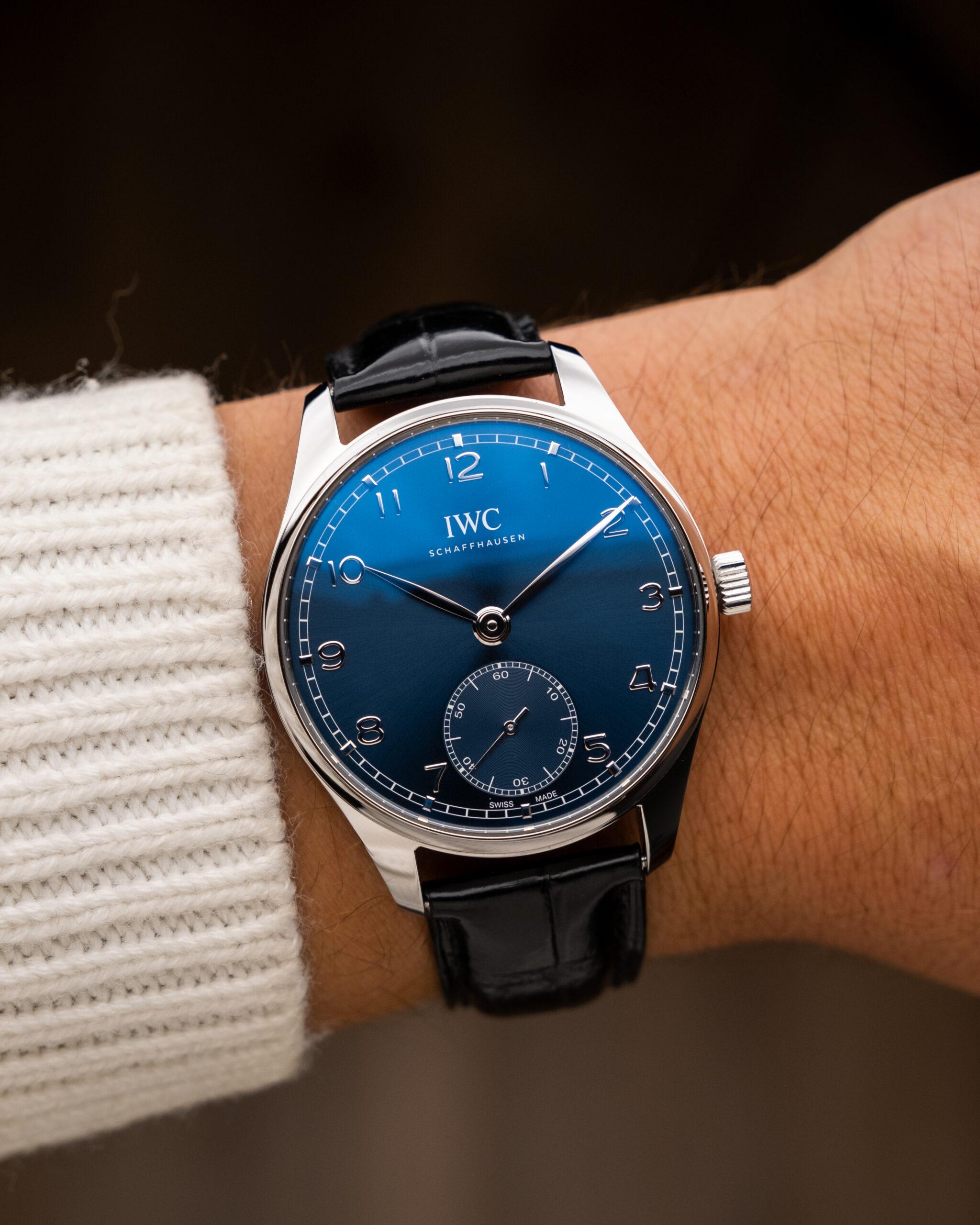 IWCjev se vedno malenkost bojim, ker so za moje zapestje pogosto preveliki. Na srečo tale Portugieser pride v 39mm velikosti, kar je praktično popolno za tak stil ure. Ni veliko modrih števičnic, ki pridejo blizu tej. Glavna atrakcija pa se skriva na drugi strani ohišja in je vidna čez caseback. Ura, ki nova v trgovini stane 8000€, naprodaj v full setu in top stanju za 5000€. Temu rečemo deal!