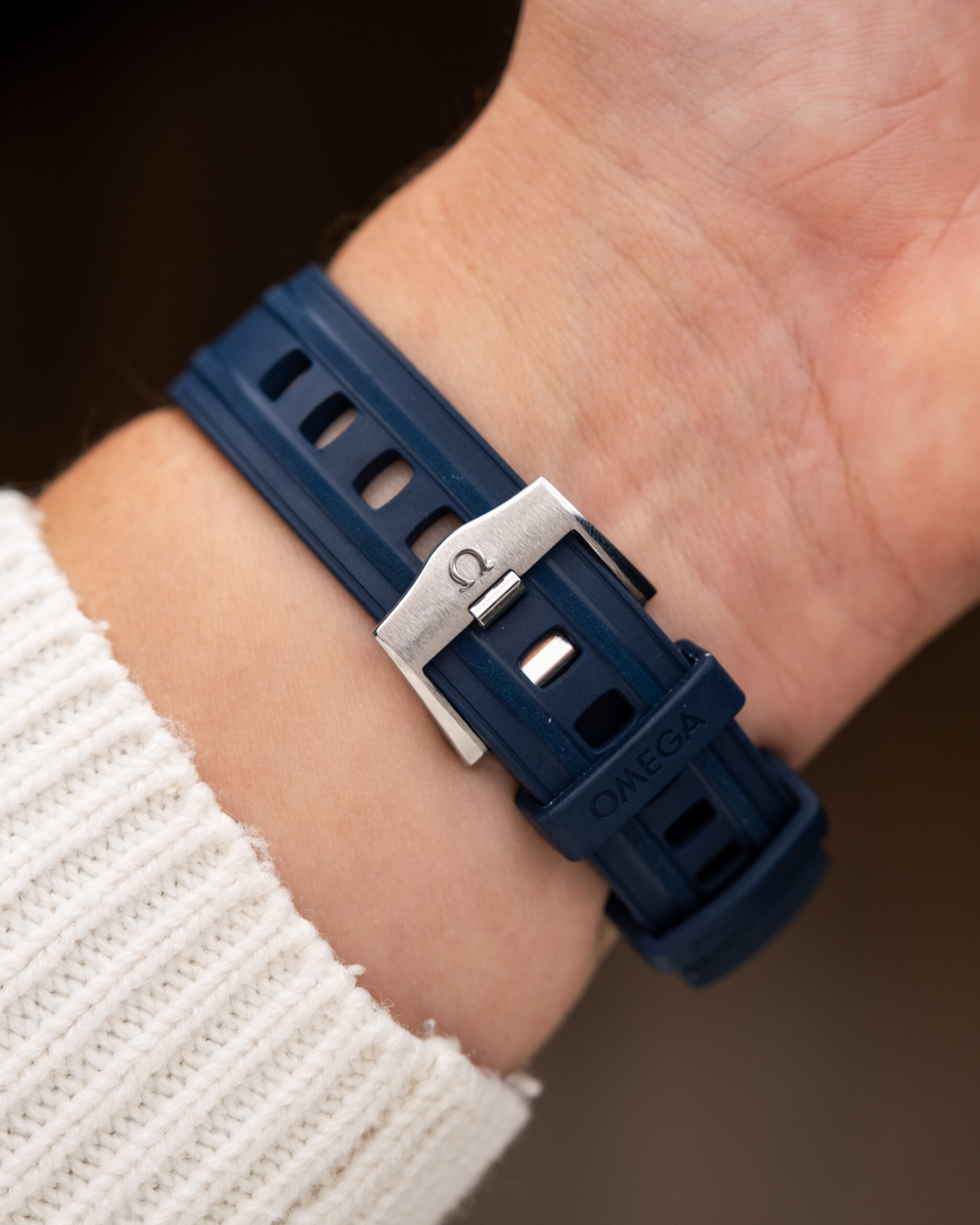 Omega Seamaster Diver Professional je neizpodbitno legendarna ura. Zapestnica ima značilen, a specifičen dizajn, ki ti je lahko samo zelo ušeč, ali pa ga sovražiš. Za vse tiste, ki svojega diverja raje nosite na kavčuku, je to popolna priložnost. Ura je na gumijastem paščku cenejša, na roki je bolj udobna in (po mnenju nekaterih) tudi lepša. To je win win win.