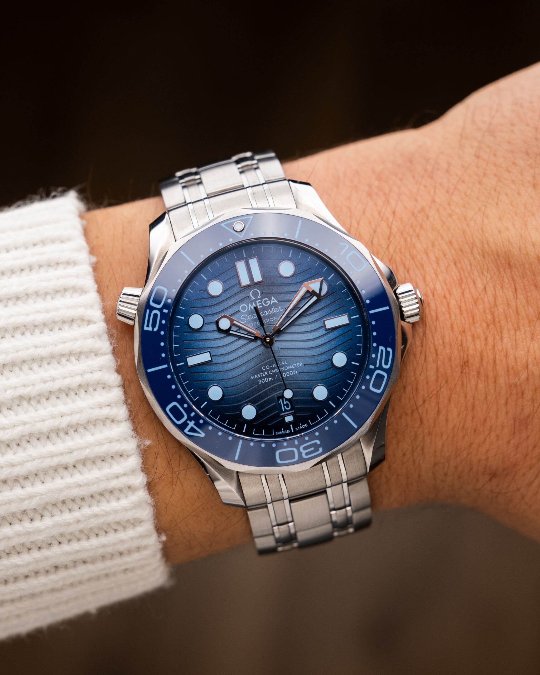 Summer blue je upravičeno najbolj zaželjena barva zadnjih par let. V živo je ta številčnica resnično nekaj posebnega. Razen tega, gre pa za zelo klasičnega Seamasterja – eno izmed najboljših modernih športnih ur.