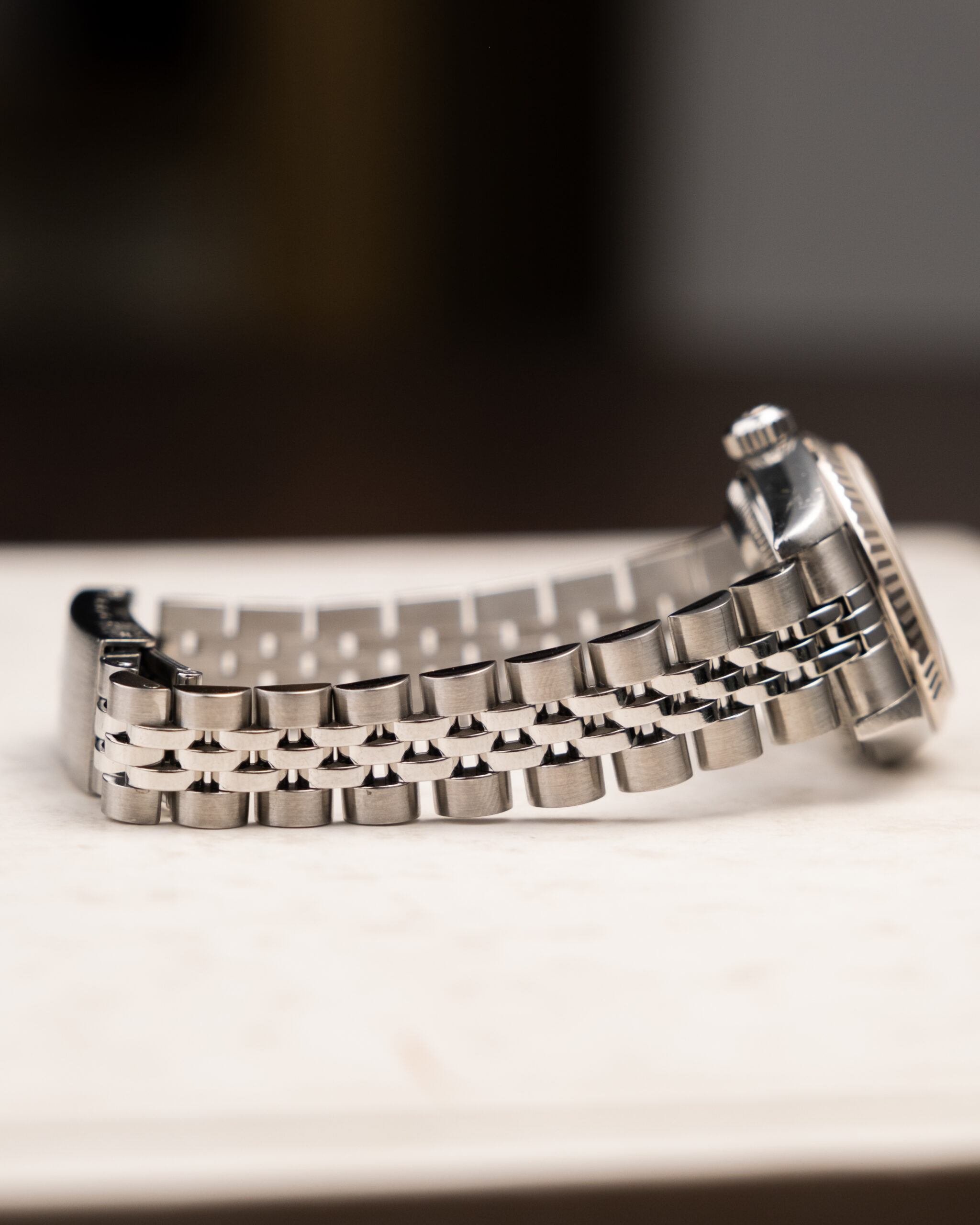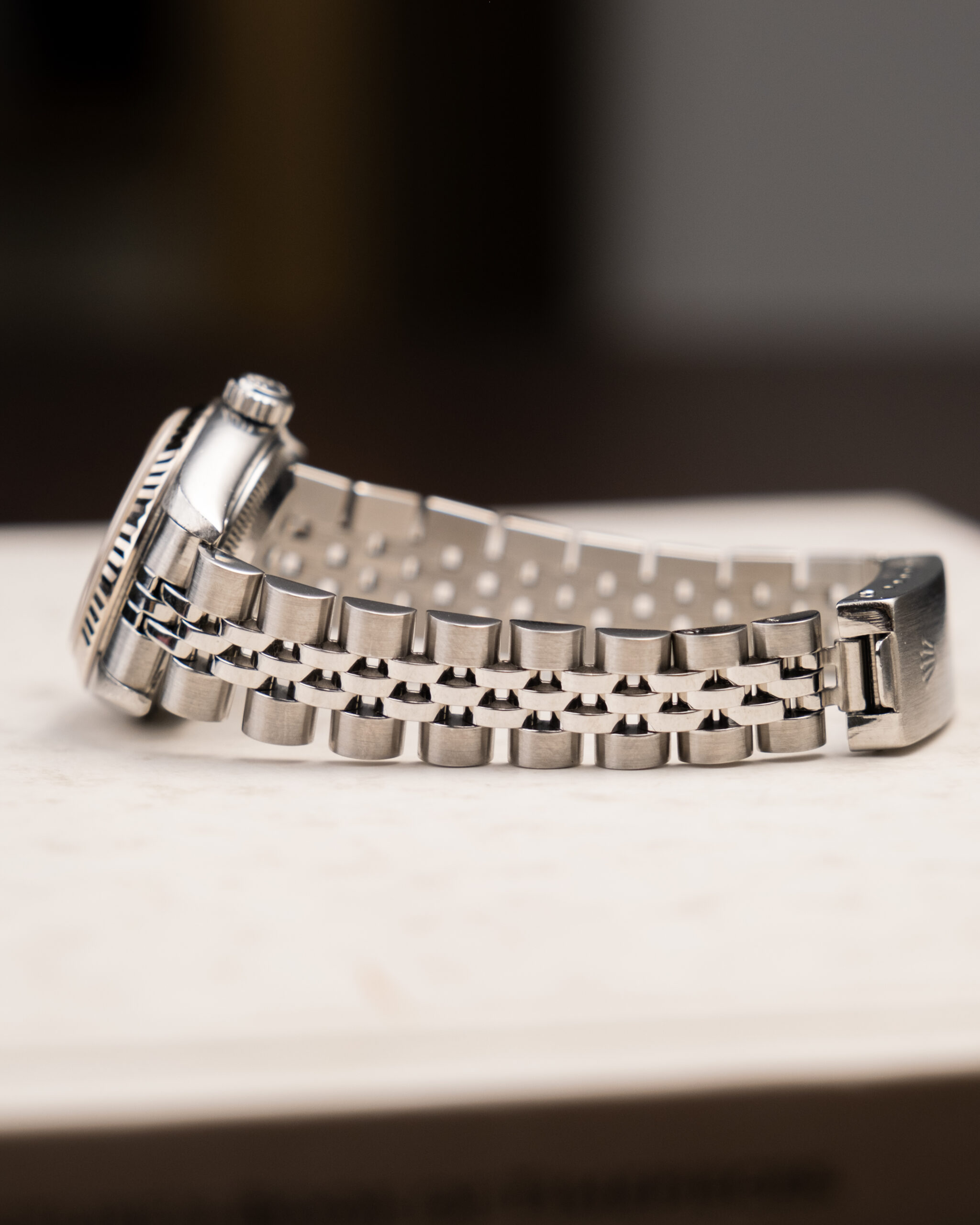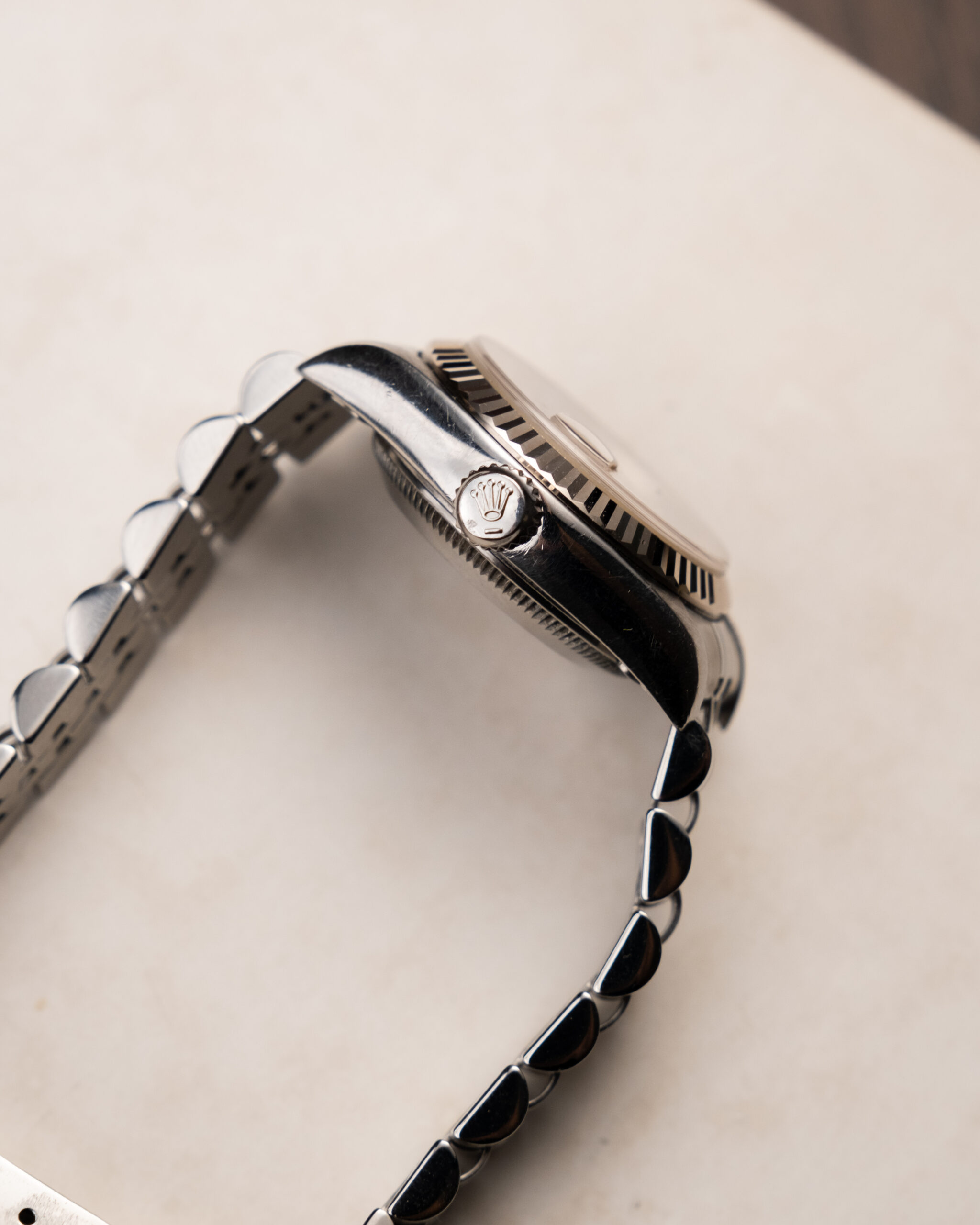 Vintage Rolex Datejust je klasika v ponudbi. Sploh teli 26mm "gumbki" iz 90ih. Tokrat s prelepo "salmon" številčnico z diamanti, ki uri doda ravno prav barve za moj okus. Avtomatski mehanizem in safirno steklo tega Datejusta naredita popolnega partnerja za vsak dan.
