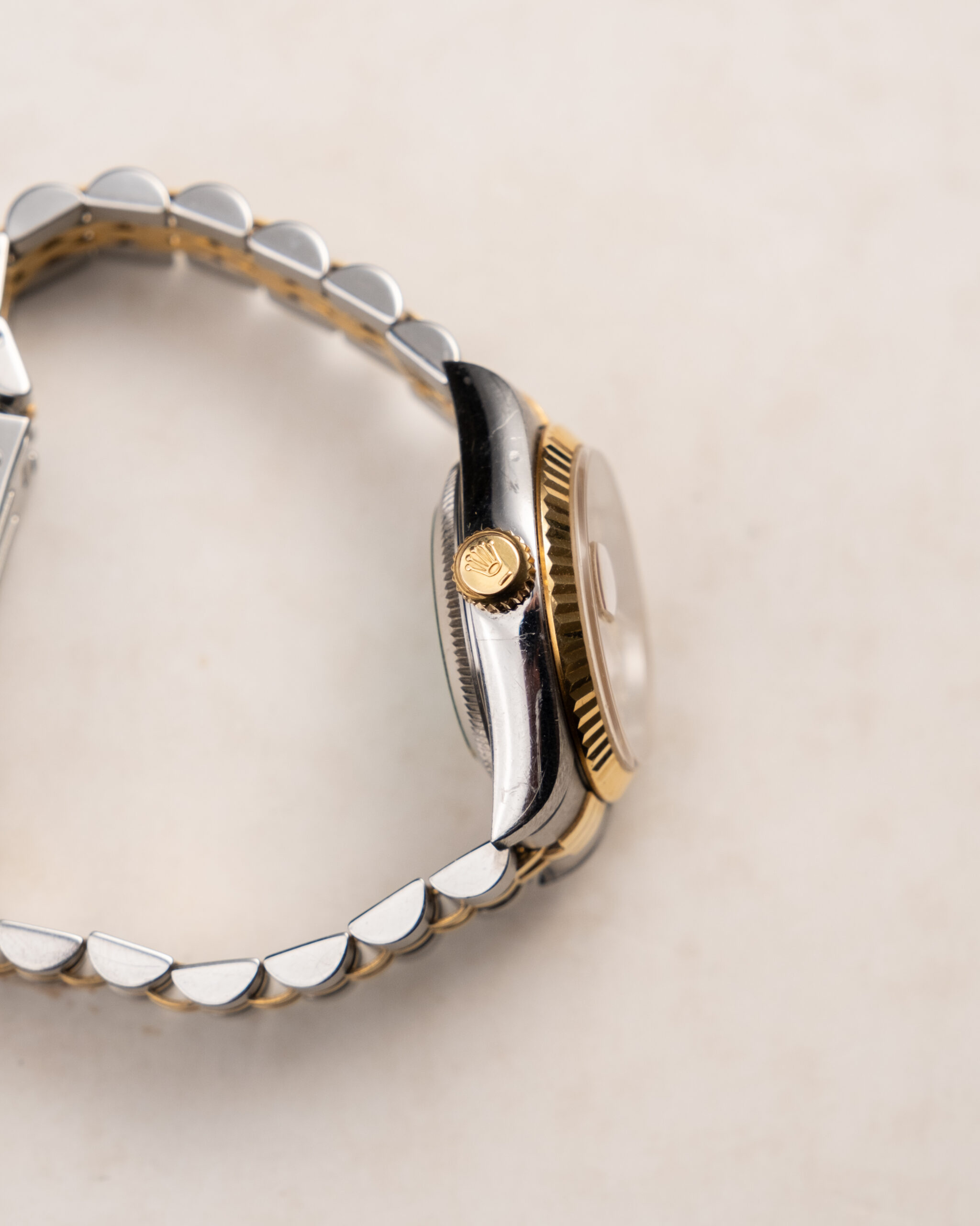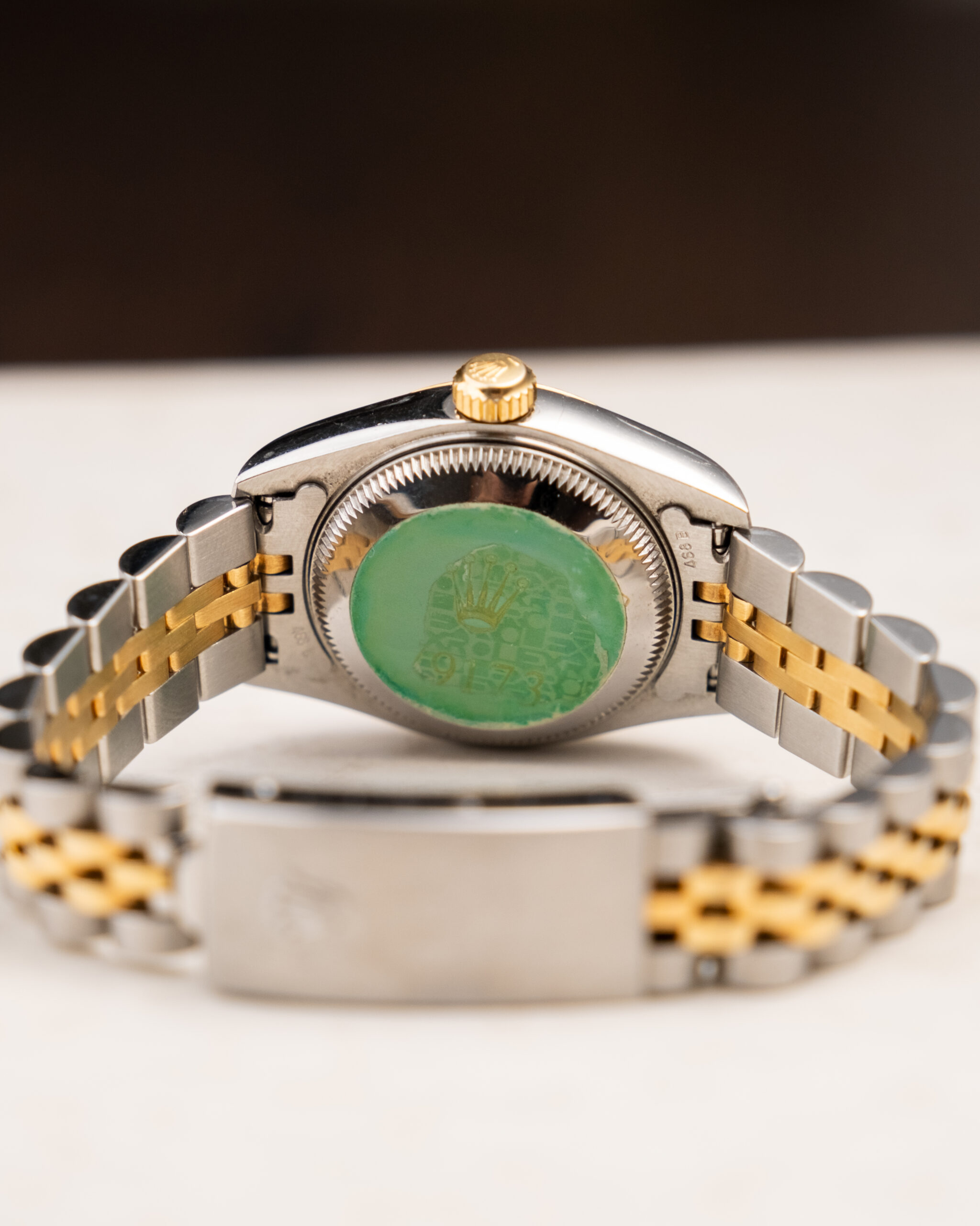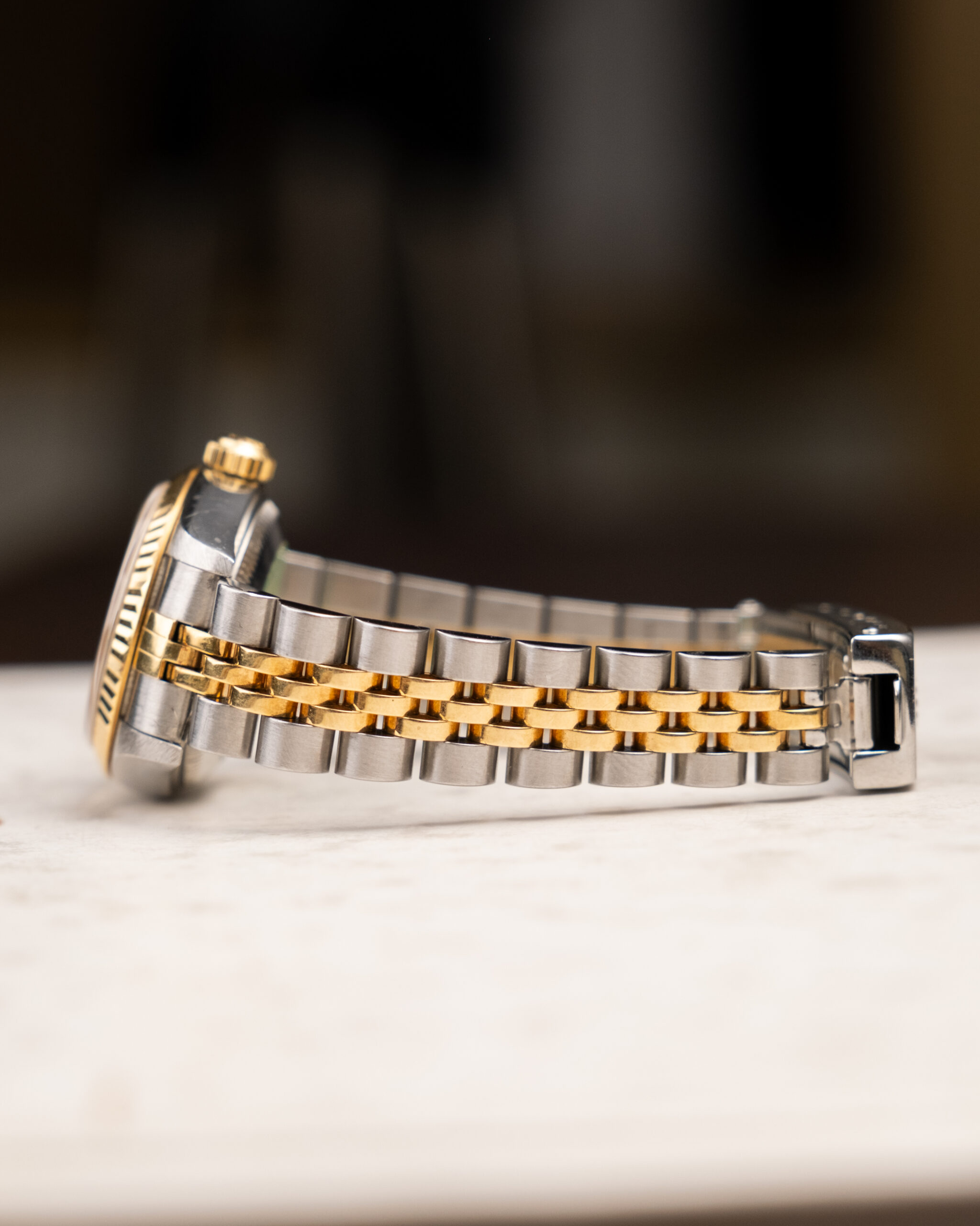 Vintage Rolex Datejust je klasika v ponudbi. Sploh teli 26mm “gumbki” iz 90ih. Tokrat v kombinaciji jekla in rumenega zlata in s prelepo “vignette” rdečo številčnico, kjer se barva iz živo rdeče pretaka v črno, za povrh vsega pa so na indeksih še diamanti. Pozor, tokrat gre za novejšo, 79173 referenco!