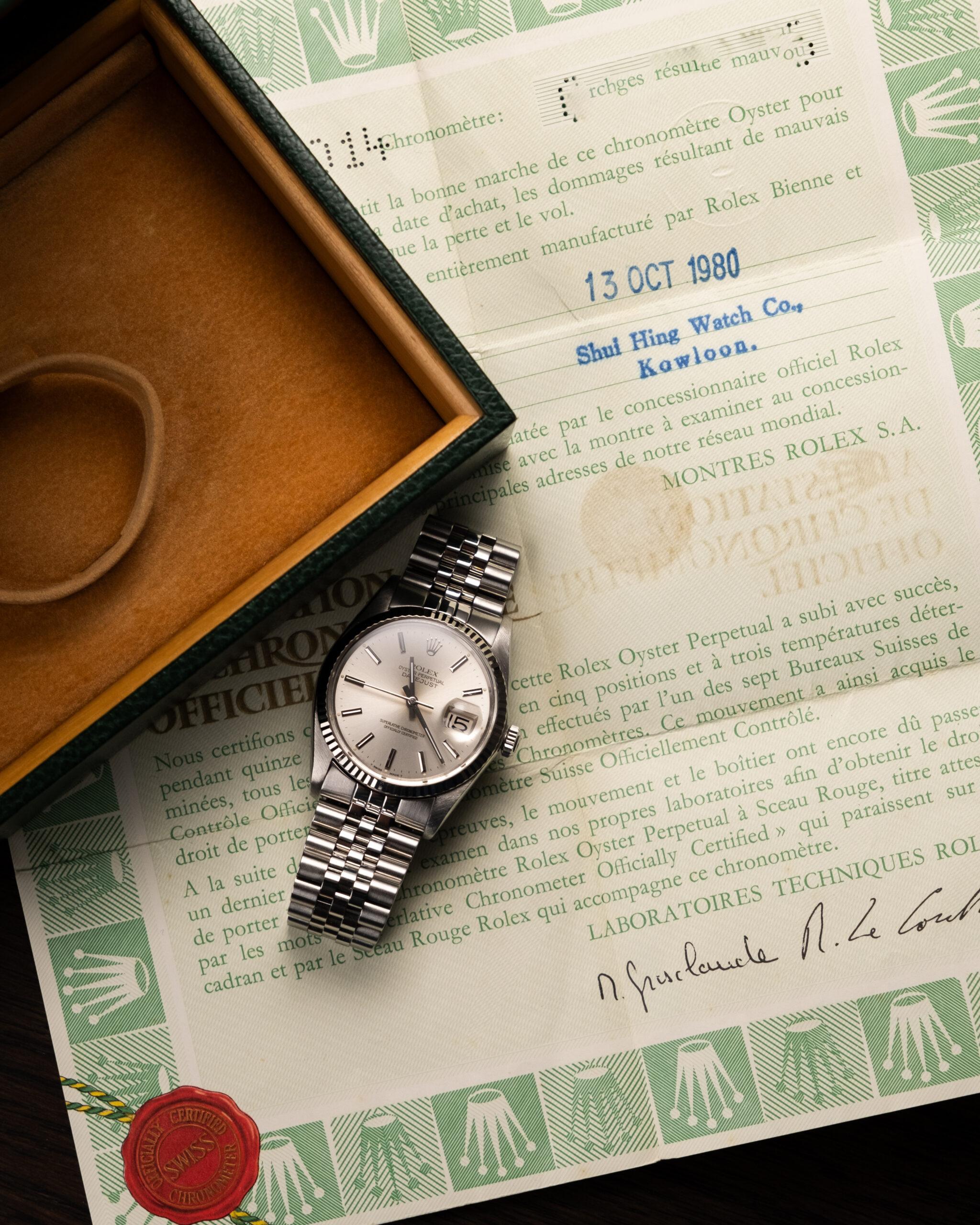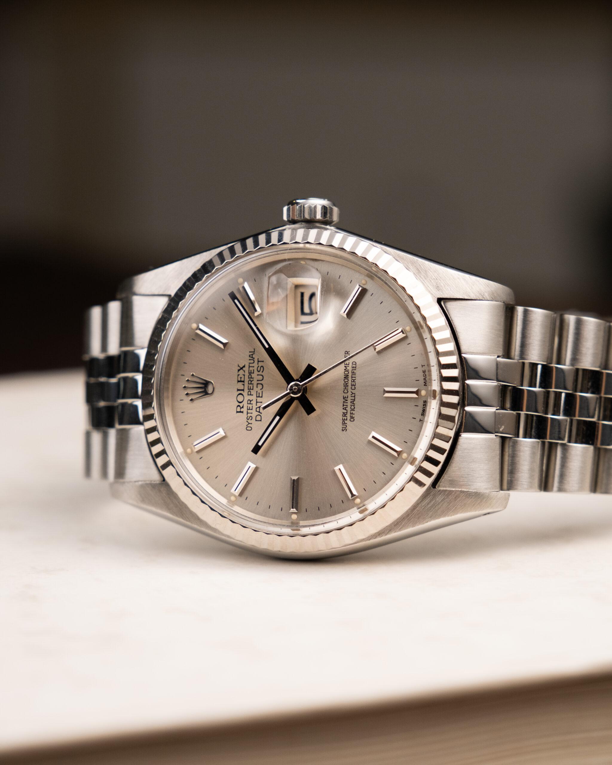 Rabljena vintage ura Rolex Datejust 36mm iz leta 1980. Ura je v odličnem stanju in pride v kompletu s škatlo ter papirji. Pogosteje na 15 čez najdeš Datejuste iz 90ih, ampak tale “plexi” primerek je bil prelep, da bi ga spregledal. Popolna vstopna točka v svet Rolexa in svet vintage ur.