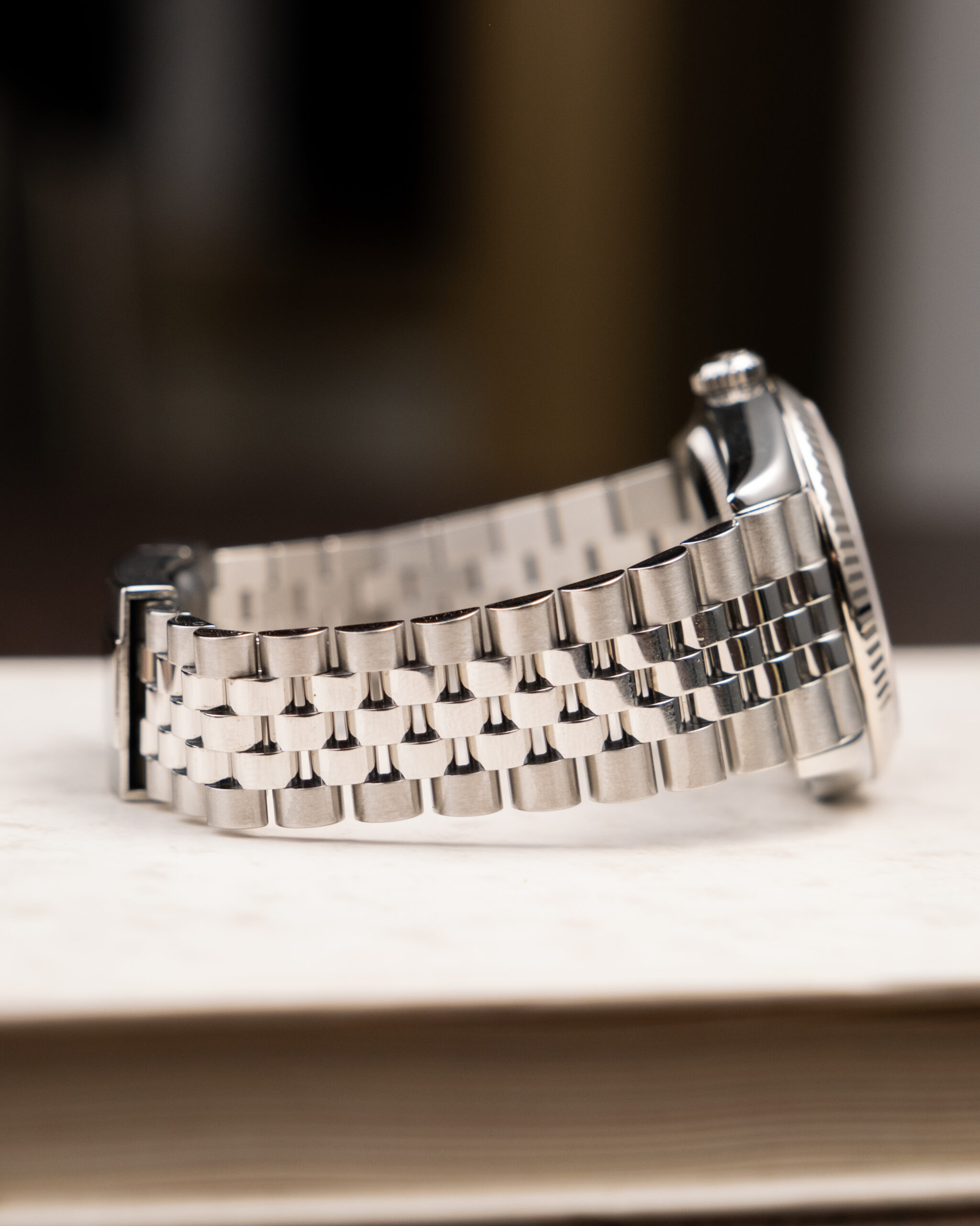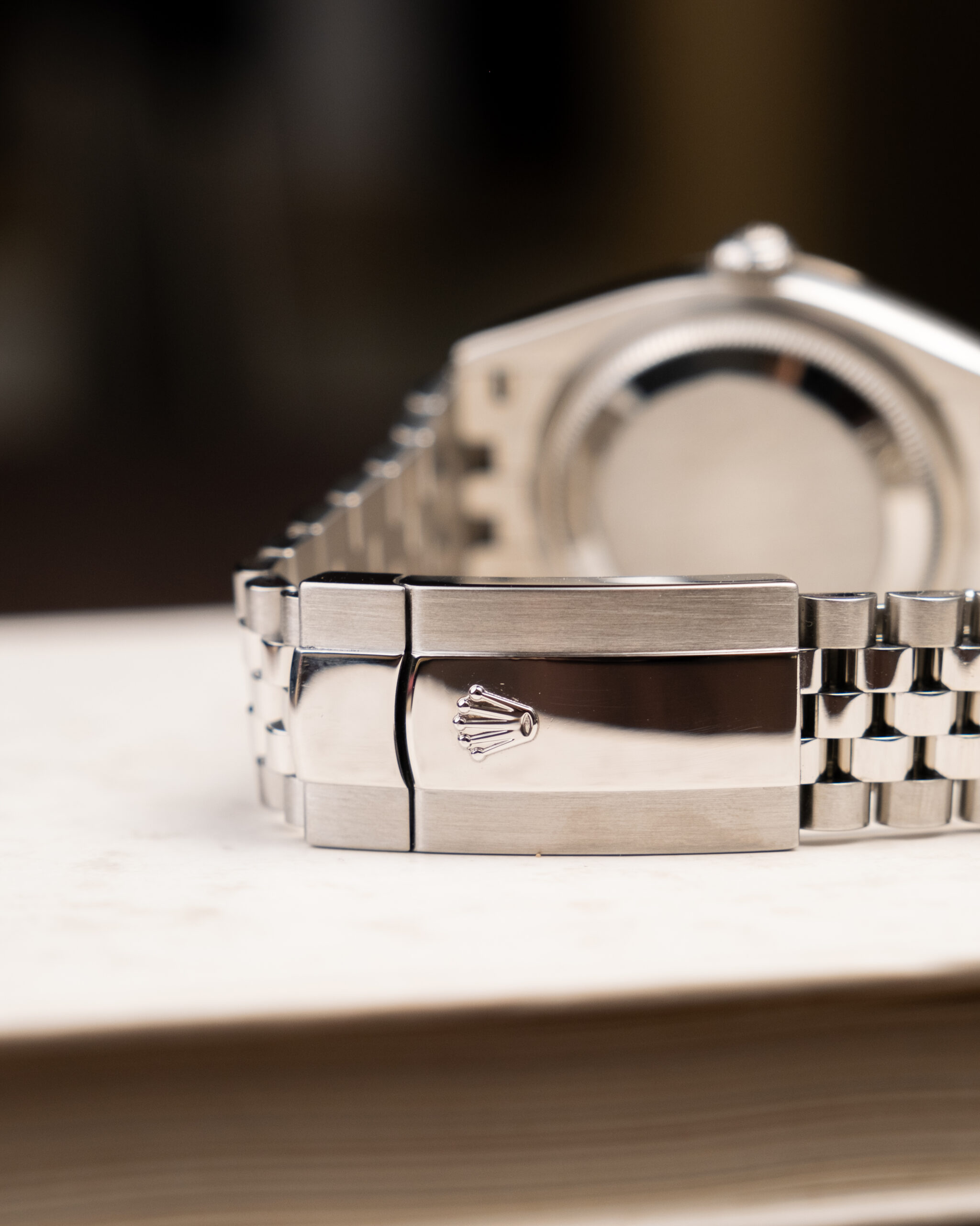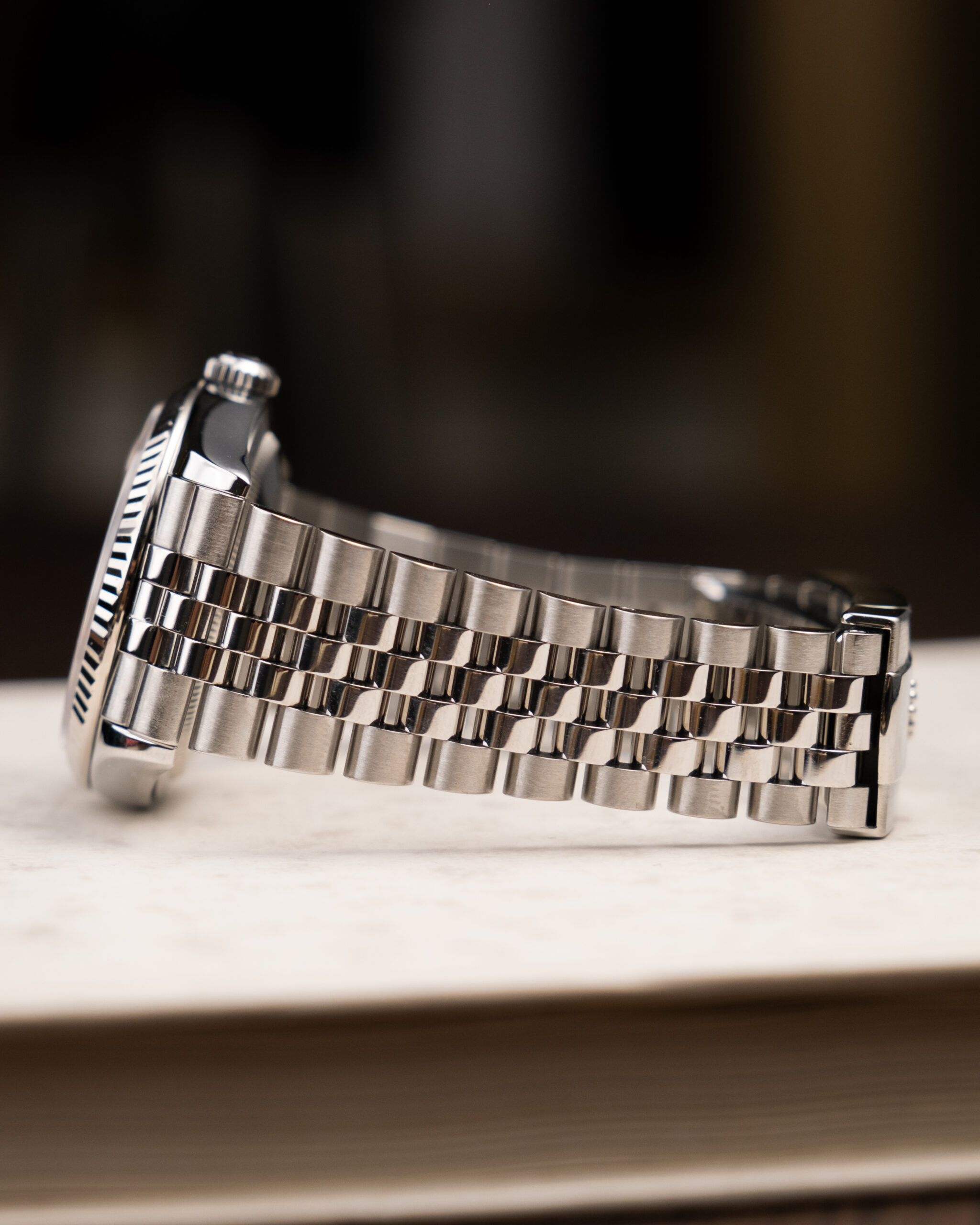 Rabljen Rolex Datejust 36 z jubilee zapestnico in fluted luneto. Tokrat v Wimbledon izvedbi. Tukaj je Rolex res zadel v piko. Načeloma se Datejust z rimskimi številkamki ne prodajajo najbolje, ampak ta je ena zelo svetla izjema. Temno siva v kombinaciji z zeleno je res posrečena.