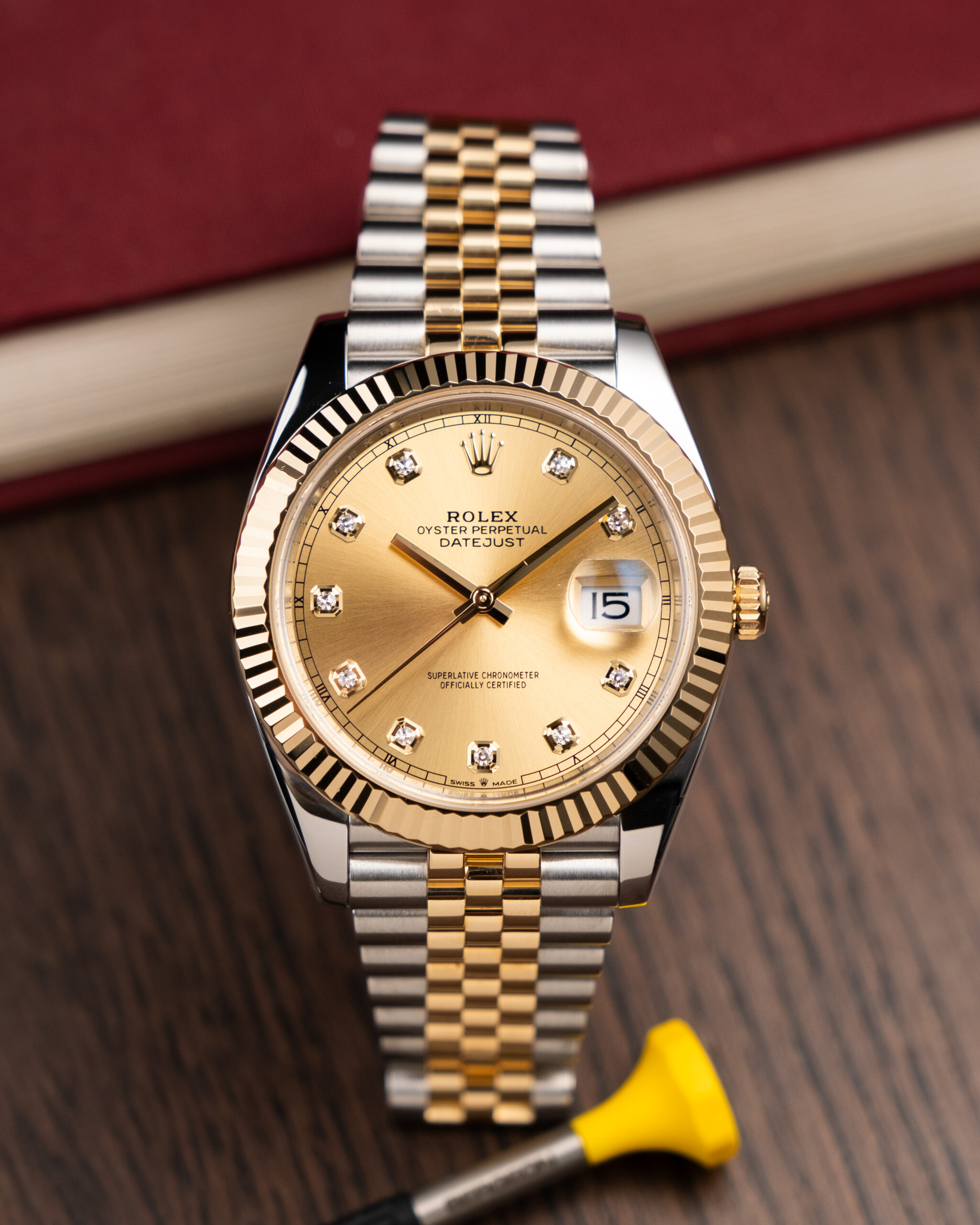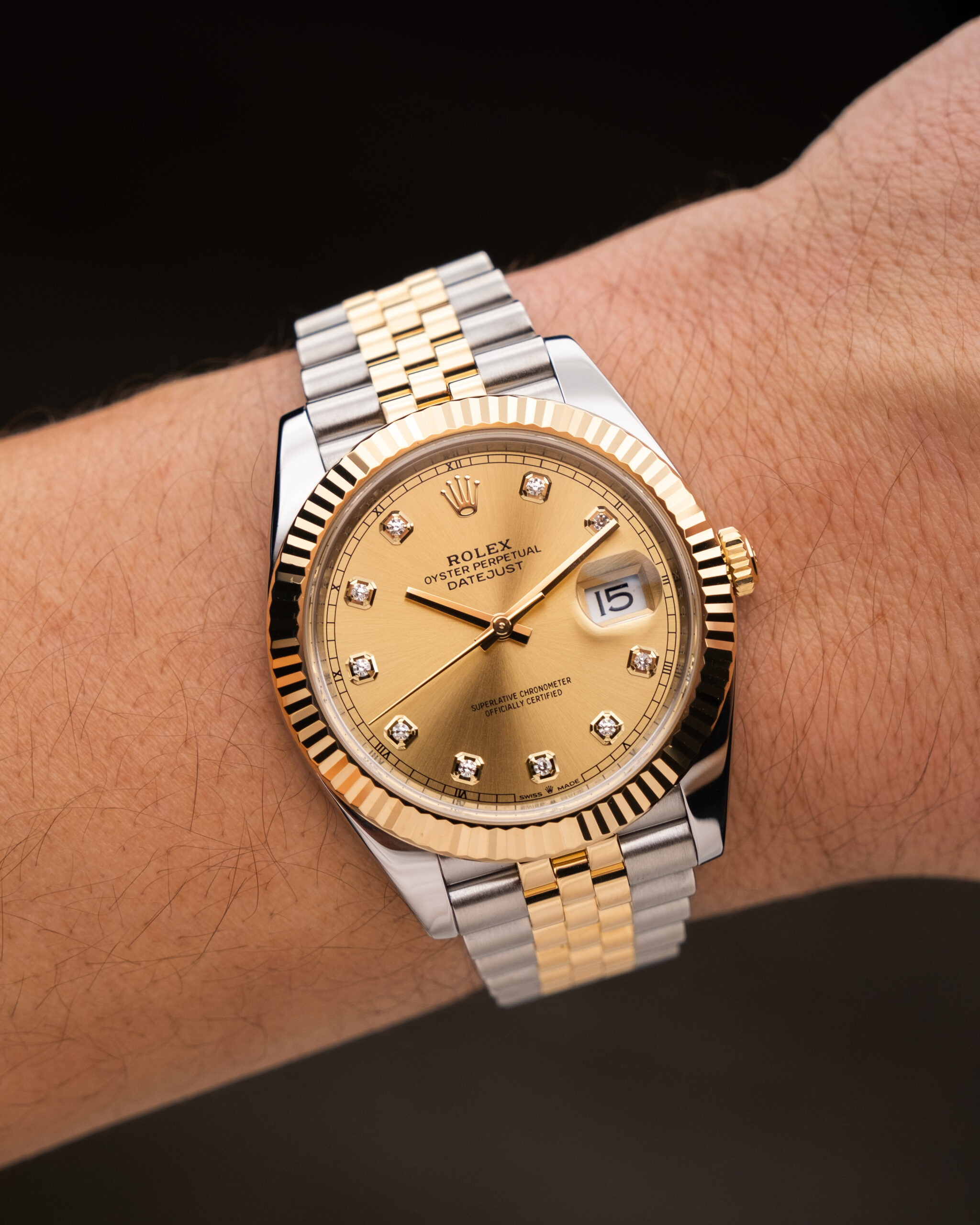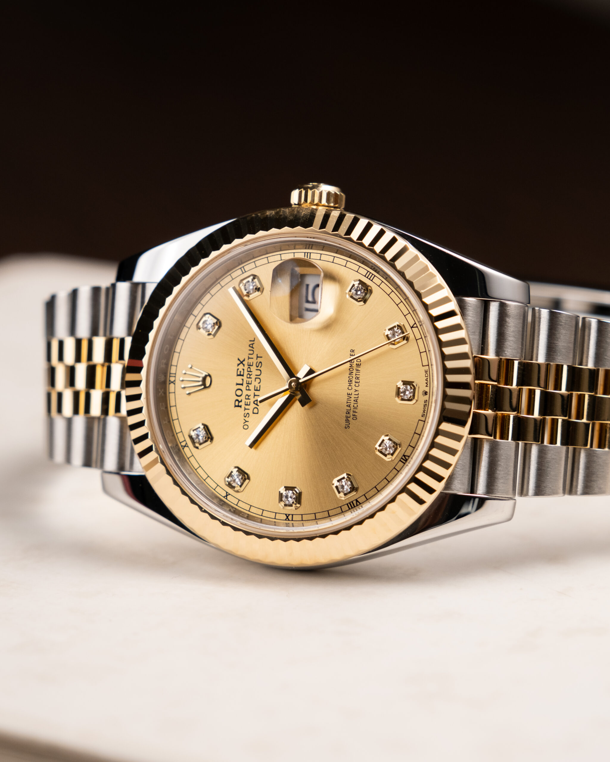 Nora ura. Two tone Datejust z diamanti na champagne številčnici. Za vse, ki bi radi svetu pokazali, da imate Rolexa. Definitivno unikaten kos, za katerega moraš biti velik frajer, če ga hočeš nosit vsak dan.