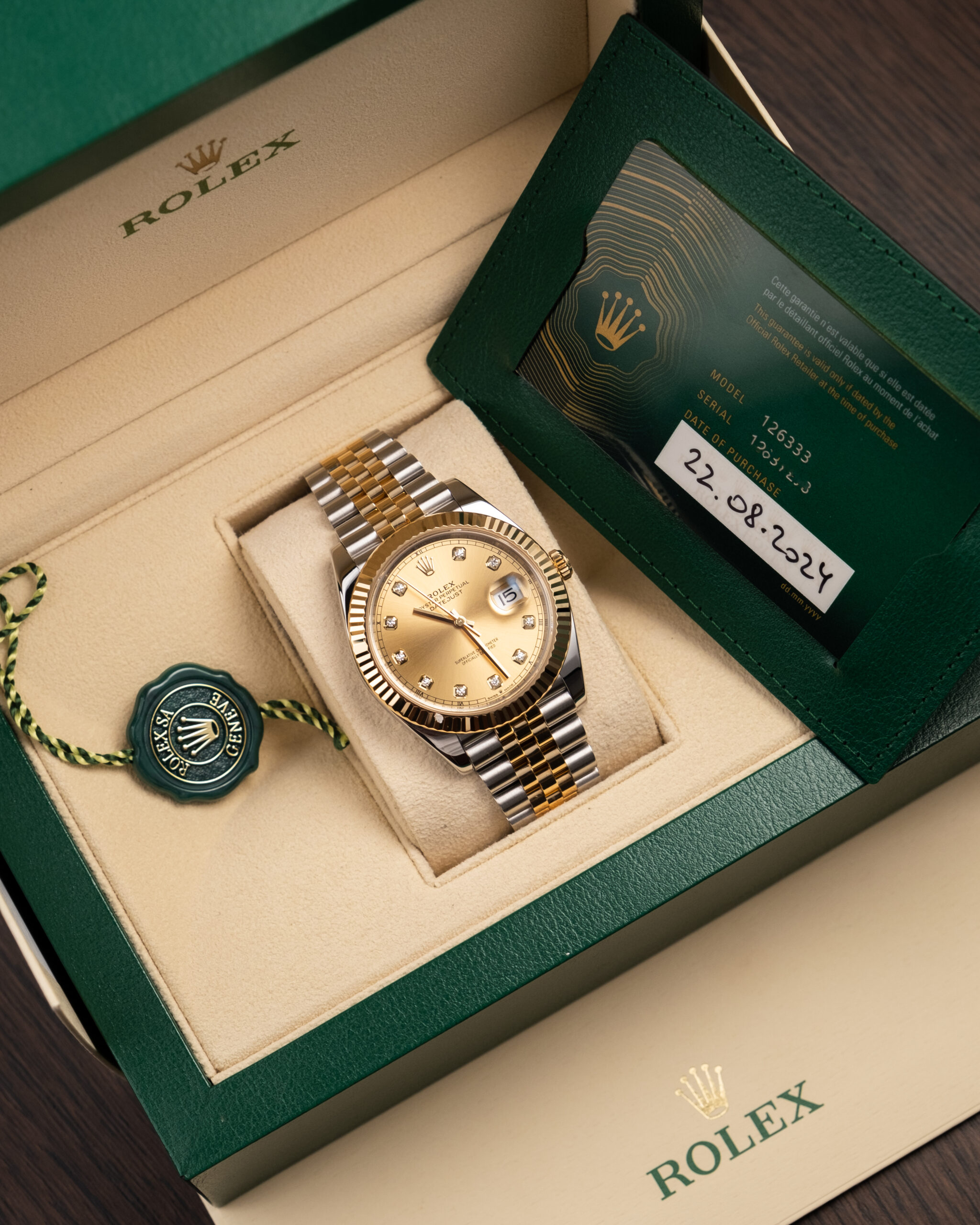 Pošlji povpraševanjeNora ura. Two tone Datejust z diamanti na champagne številčnici. Za vse, ki bi radi svetu pokazali, da imate Rolexa. Definitivno unikaten kos, za katerega moraš biti velik frajer, če ga hočeš nosit vsak dan.