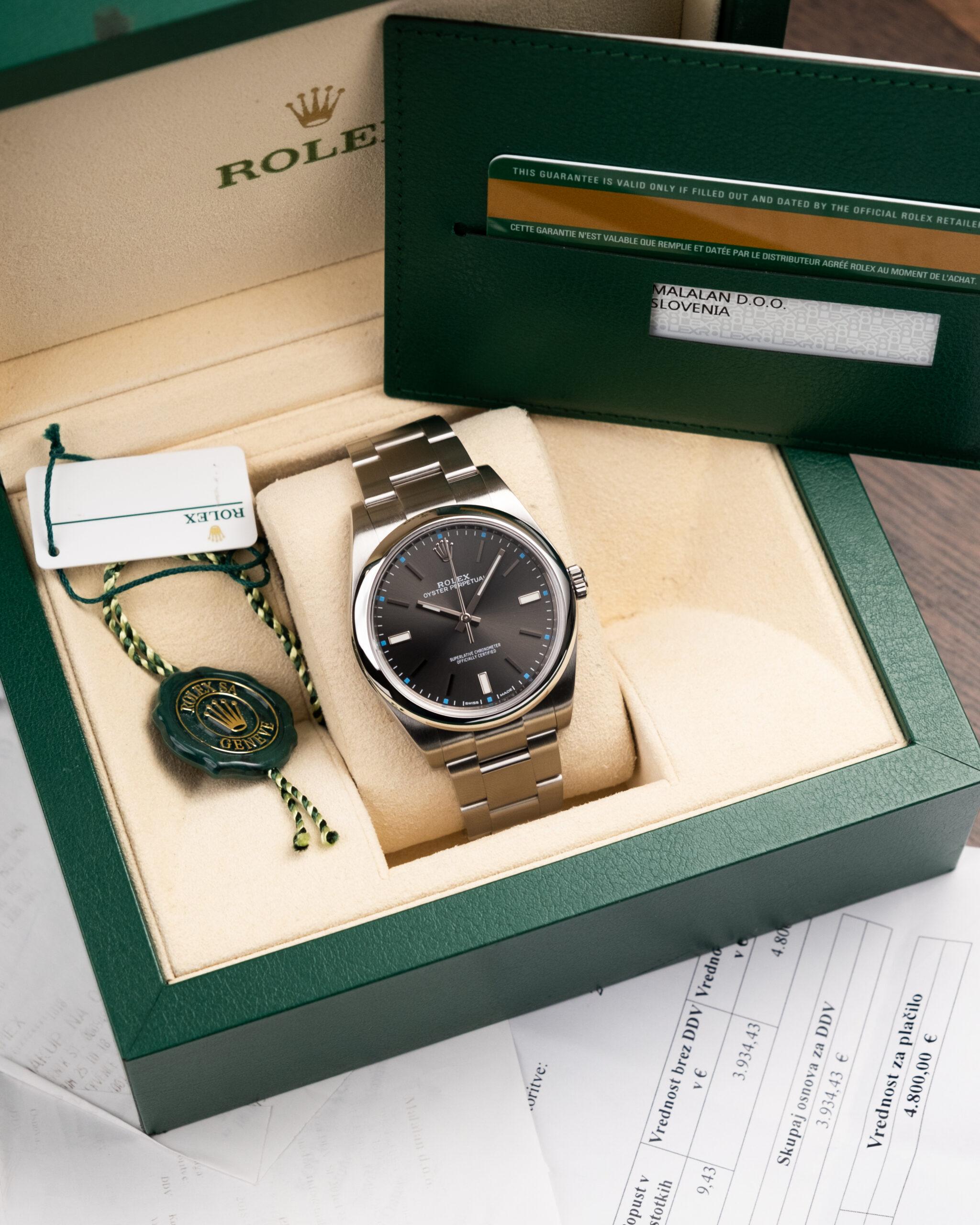 114300 je ena izmed mojih najljubših Rolexovih referenc vseh časov. Mislim, da je 39mm velikost boljša od 41mm. Ura se na roki nosi res dobro in je super izbira za vse, ki mislite, da je 36mm ženska velikost 😀